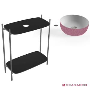 Έπιπλο μπάνιου πάγκος Diva 75 27031510-NROP4949 χωρίς οπή για μπαταρία, βάση νιπτήρα και ράφι από πορσελάνη χρώμα Ardesia (Black Matt) - σκελετός μεταλλικός, χρώμα black matt και νιπτήρας στρογγυλός επιτραπέζιος πορσελάνης υψηλής ποιότητας, SCARABEO σειρά GLAM 1807-SER Pois Pink Ø39 cm βάθος γούρνας 11 cm χωρίς υπερχείλιση. Άριστη ποιότητα που εξασφαλίζει την απαιτούμενη αντοχή και διαχρονικότητα.