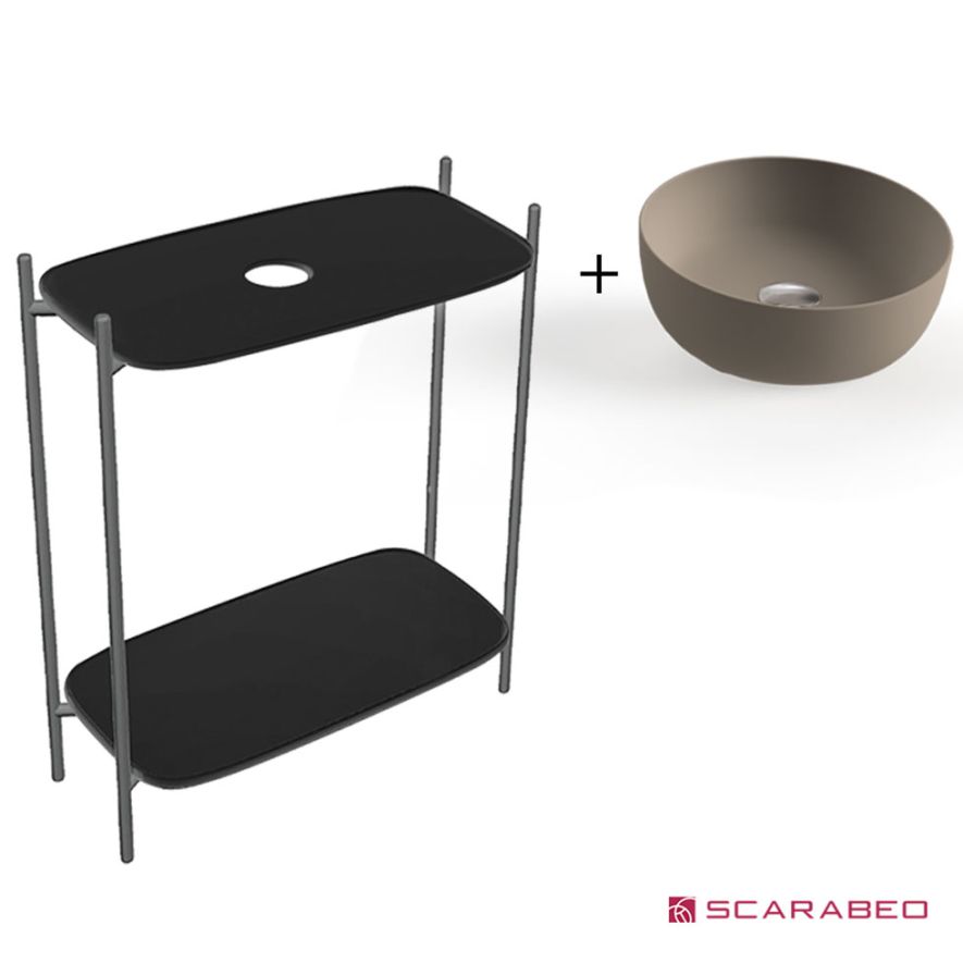 ΕΠΙΠΛΟ ΜΠΑΝΙΟΥ ΠΑΓΚΟΣ ΜΕ ΡΑΦΙ DIVA 75 27031510-NROP4949 BLACK MATT ΧΩΡΙΣ ΟΠΗ & ΝΙΠΤΗΡΑΣ ΕΠΙΤΡΑΠΕΖΙΟΣ SCARABEO GLAM 1808-510 Sand 74x43xh77,5cm