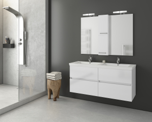 Έπιπλο μπάνιου της Drop σειρά Elegance μοντέλο Luxus 120 χρώμα White λάκα γυαλιστερή 120cm. Κρεμαστή βάση επίπλου 4 συρτάρια αποθηκευτικοί χώροι, νιπτήρας πορσελάνης, καθρέπτης κρεμαστός σε ξύλινη βάση (2 τεμ.), κρεμαστό ερμάριο, φωτιστικό Led (2 τεμ.). Κομψότητα με στυλ. Στη σειρά Elegance η Drop σας δίνει τον τέλειο συνδυασμό της λειτουργικότητας και του μοναδικού design. Μοντέρνες λύσεις που ξεχωρίζουν, για ένα μπάνιο με προσωπικότητα. Οι μπαταρίες τα φωτιστικά και τα αξεσουάρ μπάνιου δεν συμπεριλαμβάνονται στην τιμή