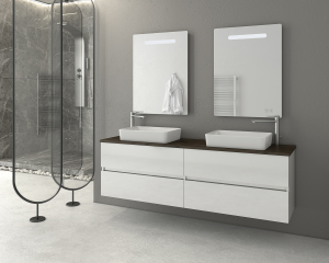 Έπιπλο μπάνιου της Drop σειρά Elegance μοντέλο Luxus 160 χρώμα White λάκα γυαλιστερή 163cm. Κρεμαστή βάση επίπλου 4 συρτάρια αποθηκευτικοί χώροι (2 τεμ.), νιπτήρας πορσελάνης (2 τεμ.), καθρέπτης κρεμαστός φωτιζόμενος Led (2 τεμ.). Κομψότητα με στυλ. Στη σειρά Elegance η Drop σας δίνει τον τέλειο συνδυασμό της λειτουργικότητας και του μοναδικού design. Μοντέρνες λύσεις που ξεχωρίζουν, για ένα μπάνιο με προσωπικότητα. Οι μπαταρίες και τα αξεσουάρ μπάνιου δεν συμπεριλαμβάνονται στην τιμή