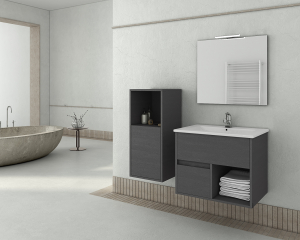 · H σύνθεση μπάνιου SORENTO 65 μπορεί να συνοδευτεί από κρεμαστή στήλη 35cm από Graphite Wood Finish, 2 αποθηκευτικοί χώροι εξασφαλίζοντας επιπλέον αποθηκευτικό χώρο 1 πόρτα - Αντιστρεπτή, διαστάσεις 35x35x80 cm