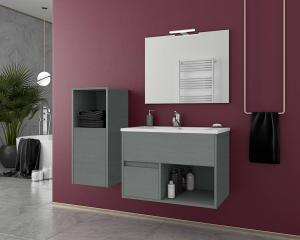 · H σύνθεση μπάνιου SORRENTO 75 μπορεί να συνοδευτεί από κρεμαστή στήλη 35cm από Graphite Wood Finish, 2 αποθηκευτικοί χώροι εξασφαλίζοντας επιπλέον αποθηκευτικό χώρο 1 πόρτα - Αντιστρεπτή, διαστάσεις 35x35x80 cm