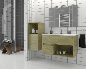 · H σύνθεση μπάνιου SORRENTO 85 μπορεί να συνοδευτεί από κρεμαστή στήλη 35cm από Natural Wood Finish, 2 αποθηκευτικοί χώροι εξασφαλίζοντας επιπλέον αποθηκευτικό χώρο 1 πόρτα - Αντιστρεπτή, διαστάσεις 35x35x80 cm