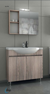 Έπιπλο μπάνιου της Drop μοντέλο Alfa 85 Silver Gray 85 cm. Επιδαπέδια βάση επίπλου, ενιαίος αποθηκευτικός χώρος δύο πόρτες, νιπτήρας πορσελάνης monoblock, καθρέπτης κρεμαστός ντουλάπι, φωτιστικό led (Κατόπιν Επιλογής σας ΕΔΩ). Μοντέρνες λύσεις που ξεχωρίζουν, για ένα μπάνιο με προσωπικότητα. Η μπαταρία, το φωτιστικό και τα αξεσουάρ μπάνιου δεν συμπεριλαμβάνονται στην τιμή