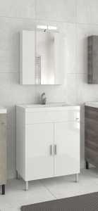Έπιπλο μπάνιου της Drop μοντέλο Roma 70 χρώμα White 70 cm. Επιδαπέδια βάση επίπλου, ενιαίος αποθηκευτικός χώρος δύο πόρτες, νιπτήρας πορσελάνης προφίλ 4cm, καθρέπτης κρεμαστός ντουλάπι, φωτιστικό led (Κατόπιν Επιλογής σας ΕΔΩ). Μοντέρνες λύσεις που ξεχωρίζουν, για ένα μπάνιο με προσωπικότητα. Η μπαταρία, το φωτιστικό και τα αξεσουάρ μπάνιου δεν συμπεριλαμβάνονται στην τιμή