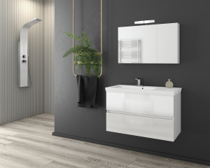 Έπιπλο μπάνιου της Drop σειρά Elegance μοντέλο Luxus 85 χρώμα White λάκα γυαλιστερή