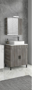 Έπιπλο μπάνιου της Drop μοντέλο Roma 80 χρώμα Light Grigio 80 cm. Επιδαπέδια βάση επίπλου, ενιαίος αποθηκευτικός χώρος δύο πόρτες, τοπ επιφάνεια πάγκος ξύλου θαλάσσης λευκός, νιπτήρας πορσελάνης ελεύθερης τοποθέτησης, καθρέπτης κρεμαστός ντουλάπι, φωτιστικό led (Κατόπιν Επιλογής σας ΕΔΩ). Μοντέρνες λύσεις που ξεχωρίζουν, για ένα μπάνιο με προσωπικότητα. Η μπαταρία, το φωτιστικό και τα αξεσουάρ μπάνιου δεν συμπεριλαμβάνονται στην τιμή