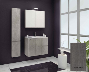 Κρεμαστό έπιπλο μπάνιου σετ της IMPACT Bathroom Furniture σειρά NATURAL μοντέλο COMO 0.90, χρώμα Κ.Π.Θ Δρυς Γκρι. Κρεμαστή βάση επίπλου, με ενιαίους αποθηκευτικούς χώρους, νιπτήρας πορσελάνης, καθρέπτης κρεμαστός και φωτιστικό. Διατίθενται επίσης σε Κόντρα Πλακέ Θαλάσσης με επένδυση καπλαμά και κωδικούς απόχρωσης Δρυς Καρυδιά, Μαύρο & Πατίνα Ασημί κατόπιν επιλογής σας. Στα έπιπλα μπάνιου impact προκαλούμε τις αισθήσεις δημιουργώντας έπιπλα μπάνιου υψηλής ποιότητας και σύγχρονου design. Σχεδιάζουμε και παράγουμε έπιπλα μπάνιου και καθρέπτες από ανθυγρά υλικά για μεγάλη αντοχή στην υγρασία σε μεγάλη ποικιλία διαστάσεων με νιπτήρες από πορσελάνη και γυαλί σε μεγάλη ποικιλία χρωμάτων. H στήλη, τα αξεσουάρ και η μπαταρία δεν συμπεριλαμβάνονται στην τιμή.