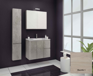 Κρεμαστό έπιπλο μπάνιου σετ της IMPACT Bathroom Furniture σειρά NATURAL μοντέλο COMO 0.90, χρώμα MDF Ρουστίκ 1. Κρεμαστή βάση επίπλου, με ενιαίους αποθηκευτικούς χώρους, νιπτήρας πορσελάνης, καθρέπτης κρεμαστός και φωτιστικό. Διατίθενται επίσης σε MDF με κωδικούς απόχρωσης Ρουστίκ 3, Ρουστίκ 5, Ρουστίκ 7 & Ρουστίκ 9 κατόπιν επιλογής σας. Στα έπιπλα μπάνιου impact προκαλούμε τις αισθήσεις δημιουργώντας έπιπλα μπάνιου υψηλής ποιότητας και σύγχρονου design. Σχεδιάζουμε και παράγουμε έπιπλα μπάνιου και καθρέπτες από ανθυγρά υλικά για μεγάλη αντοχή στην υγρασία σε μεγάλη ποικιλία διαστάσεων με νιπτήρες από πορσελάνη και γυαλί σε μεγάλη ποικιλία χρωμάτων. H στήλη, τα αξεσουάρ και η μπαταρία δεν συμπεριλαμβάνονται στην τιμή.