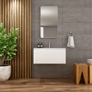Κρεμαστό έπιπλο μπάνιου σετ της IMPACT Bathroom Furniture σειρά Lux μοντέλο Milano 0.80, χρώμα Κόντρα Πλακέ Θαλάσσης Λάκα Λευκή