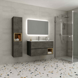 Κρεμαστό έπιπλο μπάνιου σετ της IMPACT Bathroom Furniture σειρά NATURAL μοντέλο PLAZA 0.90, χρώμα Μελαμίνη Μ11