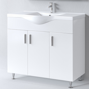 · Επιδαπέδια βάση νιπτήρα διαθέτει τρεις πόρτες και τέσσερις χώρους αποθήκευσης, ξεχωρίζει για την μοντέρνα γραμμή του και την μεγάλη πρακτικότητα του, διαστάσεις 96x34x83 cm
