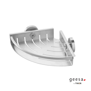 Επίτοιχη σπογγοθήκη - μπουκαλοθήκη γωνιακή της GEESA by Tiger 3048, φινίρισμα Inox, 195 x 195 x 50 mm. Η κορυφαία αισθητική και η ποιότητα είναι ο σημαντικότερος παράγοντας στην επιλογή αξεσουάρ μπάνιου.