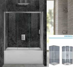 Καμπίνα μπανιέρας ευθύγραμμη Aquarelle μοντέλο Bathtub 90, 170 - 180 x h 145 cm, κρύσταλλο ασφαλείας Tempered 5 mm σχέδιο serigrafia, φινίρισμα χρωμέ. Στην τιμή δεν συμπεριλαμβάνεται το Aquaclean System, Aquarelle Art η μπανιέρα και η στήλη ντους