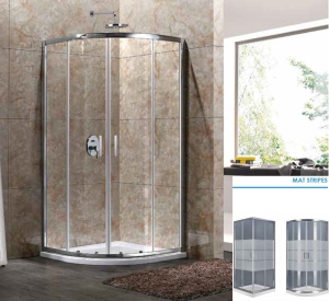 Καμπίνα ντουζιέρας ημικυκλική Aquarelle μοντέλο Crete 20, 90x90xh 180 cm, κρύσταλλο ασφαλείας Tempered 5 mm σχέδιο Mat Stripes, αφαλατική επεξεργασία Aqua Clean System, διατίθεται και σε clear, Serigrafia, mat & mat middle, μεταλλικά μέρη αλουμινίου Chrome Mirror. Στην τιμή δεν συμπεριλαμβάνεται το Aquarelle Art η ντουζιέρα και η στήλη ντους.