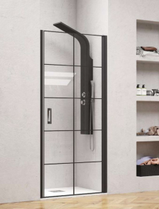 Καμπίνα ντουζιέρας ανοιγόμενη από τοίχο σε τοίχο, ευθύγραμμη - πόρτα, Karag μοντέλο NERO PIVOT PORTA, 90 x h 200 cm, κρύσταλλο ασφαλείας 6 mm Tempered σεριγραφάτο, μεταλλικά μέρη προφίλ ανοδιωμένου αλουμινίου μαύρο.