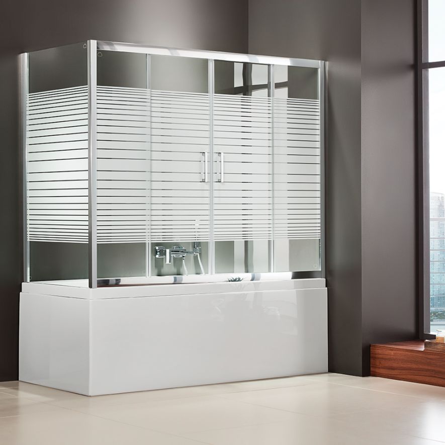Καμπίνα - πόρτα μπανιέρας Axis μοντέλο Bath SLIDER (2+2) SLB2X 160 S + 1 x ΧB3/140-100 προεκτείνει το μήκος της πόρτας ή του πλαϊνού κατά 3 εκ, 161-164 x h 140 cm, κρύσταλλο ασφαλείας 6mm Stripes, φινίρισμα χρώμιο “Mirror Finish”. Μοντέρνος σχεδιασμός, καθαρές γραμμές και πολυμορφία. Στην τιμή δεν συμπεριλαμβάνεται η μπανιέρα, το σταθερό πλαϊνό και η μπαταρία με το ντους χειρός