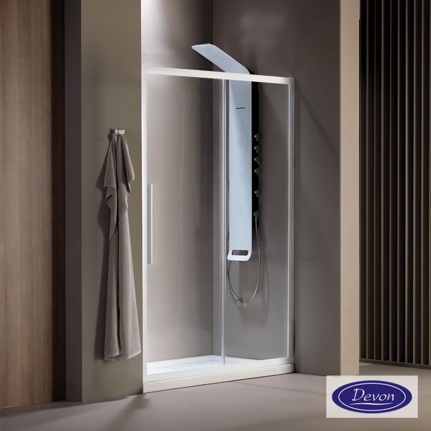 Καμπίνα πόρτα ντουζιέρας, Devon μοντέλο Flow Slider SLF 140 C, 137-141 x h 195 cm, κρύσταλλο ασφαλείας 6 mm Clear διαφανές Clean Glass, φινίρισμα “White matt”. Κάθε μοντέλο Flow collection ενσωματώνει και αντανακλά την ποιότητα Devon και στις πιο μικρές λεπτομέρειες. Στην τιμή δεν συμπεριλαμβάνεται η ντουζιέρα το σταθερό πλαϊνό και η στήλη ντους