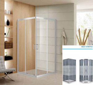 Καμπίνα ντουζιέρας γωνιακής εισόδου τετράγωνη Aquarelle μοντέλο Venia 10 120x120, 120x120xh 185 cm, κρύσταλλο ασφαλείας Tempered 6 mm σχέδιο mat stripes με αφαλατική επεξεργασία Aqua Clean System, διατίθεται και σε clear, serigrafia, mat & mat middle, μεταλλικά μέρη αλουμινίου Chrome Mirror.