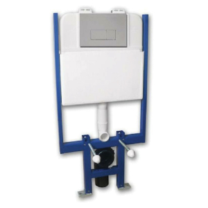 · Ένθετο σε τοίχο μονού τούβλου ή επίτοιχο σε μονότουβλο τοίχο και επένδυση γυψοσανίδας καζανάκι εντοιχιζόμενο διπλής λειτουργίας 3/6 Lt με πλαίσιο στήριξης για κρεμαστές λεκάνες