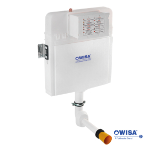 Εντοιχιζόμενο καζανάκι ένθετο σε τοίχο μονού τούβλου ή επίτοιχο σε μονότουβλο τοίχο και επένδυση γυψοσανίδας, για λεκάνες Υψηλής Πίεσης, της WISA σειράς Slim Basic μοντέλο 362-2955 με πάχος 8,5cm