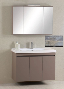 Έπιπλο μπάνιου σετ PRO BAGNO της σειράς ELEGANT μοντέλο CODE 950 A 100 cm αποχρώσεις MDF Matrix W20. Κρεμαστή βάση επίπλου, αποθηκευτικός χώρος, νιπτήρας πορσελάνης, καθρέπτης κρεμαστός και φωτιστικό. H μπαταρία δεν συμπεριλαμβάνεται στην τιμή.
