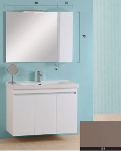 Έπιπλο μπάνιου σετ PRO BAGNO της σειράς ELEGANT μοντέλο CODE 950 B αποχρώσεις MDF Soft S1. Κρεμαστή βάση επίπλου, αποθηκευτικός χώρος, νιπτήρας πορσελάνης, καθρέπτης με ντουλάπι κρεμαστός και φωτιστικό. H μπαταρία και τα αξεσουάρ δεν συμπεριλαμβάνεται στην τιμή.