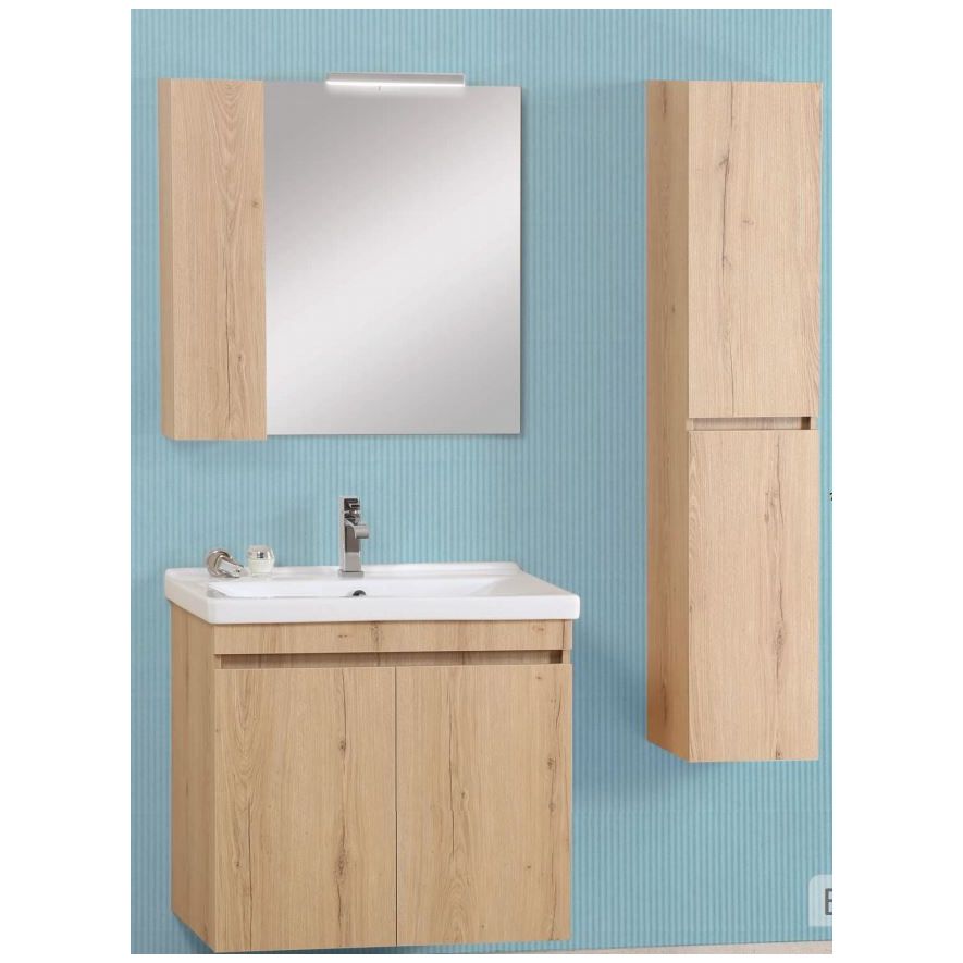 Έπιπλο μπάνιου σετ PRO BAGNO της σειράς ELEGANT μοντέλο CODE 951 B 80 cm αποχρώσεις MDF Soft S1 - Prime. Κρεμαστή βάση επίπλου, αποθηκευτικός χώρος, νιπτήρας πορσελάνης, καθρέπτης με ντουλάπι κρεμαστός και φωτιστικό. H κρεμαστή στήλη και η μπαταρία δεν συμπεριλαμβάνεται στην τιμή.