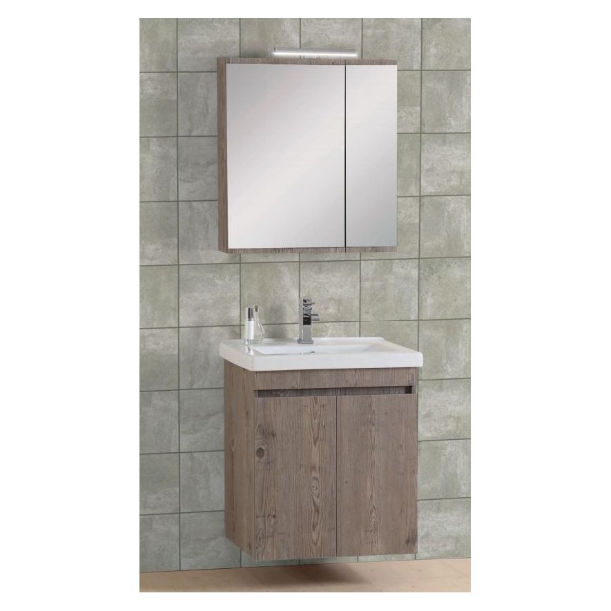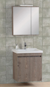 Έπιπλο μπάνιου σετ PRO BAGNO της σειράς ELEGANT μοντέλο CODE 952 A 65 cm αποχρώσεις MDF Soft S1 - Prime. Κρεμαστή βάση επίπλου, αποθηκευτικός χώρος, νιπτήρας πορσελάνης, καθρέπτης ντουλάπι κρεμαστός και φωτιστικό. H μπαταρία και τα αξεσουάρ δεν συμπεριλαμβάνεται στην τιμή.