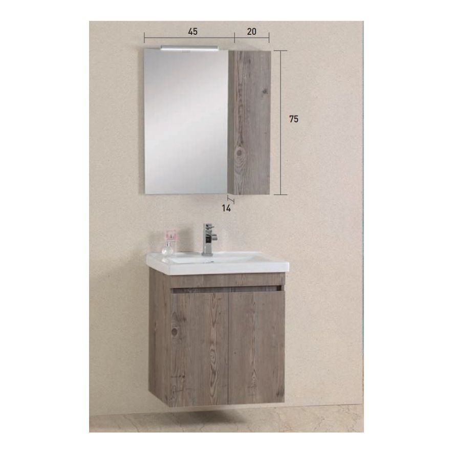 Έπιπλο μπάνιου σετ PRO BAGNO της σειράς ELEGANT μοντέλο CODE 952 B 65 cm αποχρώσεις MDF Soft S1 - Prime. Κρεμαστή βάση επίπλου, αποθηκευτικός χώρος, νιπτήρας πορσελάνης, καθρέπτης με ντουλάπι κρεμαστός και φωτιστικό. H μπαταρία και τα αξεσουάρ δεν συμπεριλαμβάνεται στην τιμή.