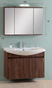 · Κρεμαστή βάση νιπτήρα με αποθηκευτικούς χώρους. Ο πάγκος νιπτήρα διαθέτει τρείς πόρτες και αντίστοιχους χώρους αποθήκευσης, διαστάσεις 100x36x70 cm