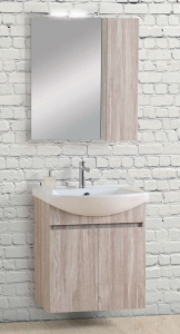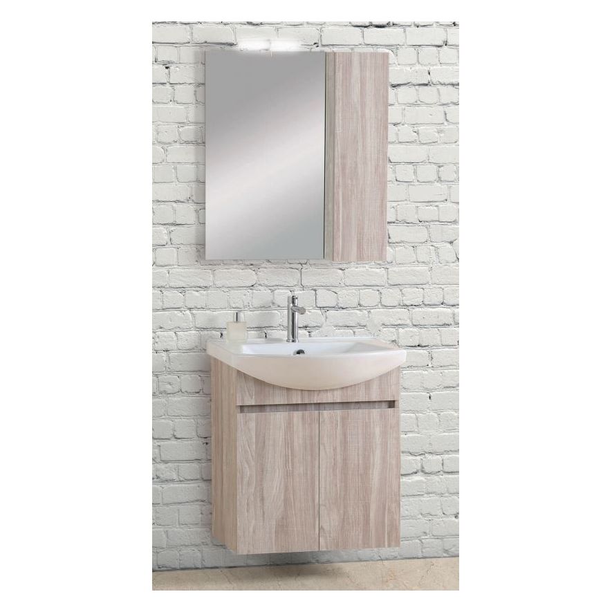 Έπιπλο μπάνιου σετ PRO BAGNO της σειράς ELEGANT μοντέλο CODE 956 B 65 cm αποχρώσεις MDF Soft S1 - Prime. Κρεμαστή βάση επίπλου, αποθηκευτικός χώρος, νιπτήρας πορσελάνης, καθρέπτης με ντουλάπι κρεμαστός και φωτιστικό.