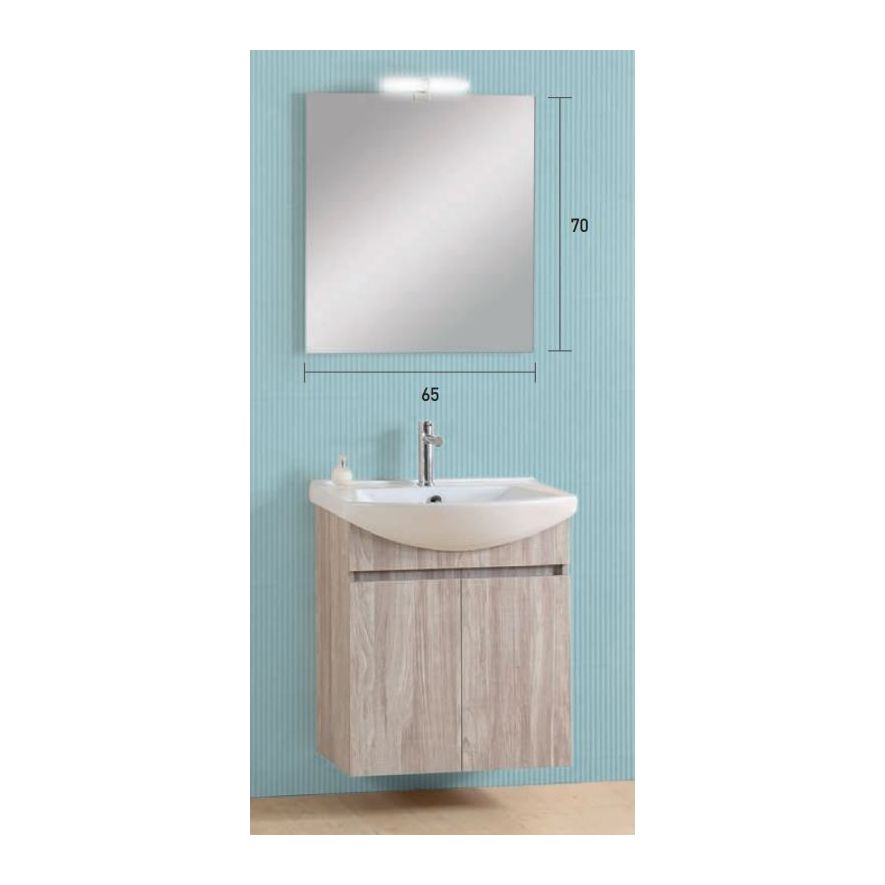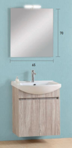 Έπιπλο μπάνιου σετ PRO BAGNO της σειράς ELEGANT μοντέλο CODE 956 C 65 cm αποχρώσεις MDF Soft S1 - Prime. Κρεμαστή βάση επίπλου, αποθηκευτικός χώρος, νιπτήρας πορσελάνης, καθρέπτης κρεμαστός και φωτιστικό.