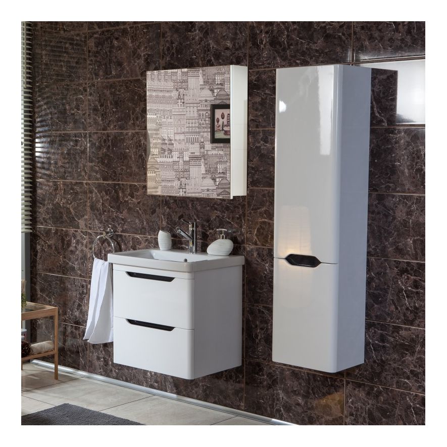 Έπιπλο μπάνιου σύνθεση της MARTIN σειρά BELE μοντέλο White Λευκή Γυαλιστερή Λάκα 60 cm. Κρεμαστή βάση επίπλου, αποθηκευτικό χώρος, νιπτήρας πορσελάνης, κρεμαστός καθρέπτης ντουλάπι. Η σειρά επίπλων μπάνιου ακολουθεί τη λογική ενσωματώνει όλες τις σύγχρονες τάσεις στο σχεδιασμό επίπλων μπάνιου. H κρεμαστή στήλη η μπαταρία και τα αξεσουάρ δεν συμπεριλαμβάνεται στην τιμή.