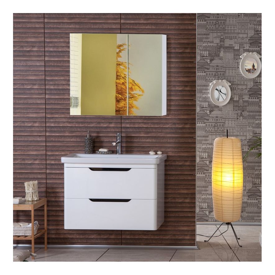 Έπιπλο μπάνιου σύνθεση της MARTIN σειρά BELE μοντέλο White Λευκή Γυαλιστερή Λάκα 80 cm. Κρεμαστή βάση επίπλου, αποθηκευτικό χώρος, νιπτήρας πορσελάνης, κρεμαστός καθρέπτης ντουλάπι. Η σειρά επίπλων μπάνιου ακολουθεί τη λογική ενσωματώνει όλες τις σύγχρονες τάσεις στο σχεδιασμό επίπλων μπάνιου. H κρεμαστή στήλη η μπαταρία και τα αξεσουάρ δεν συμπεριλαμβάνεται στην τιμή.