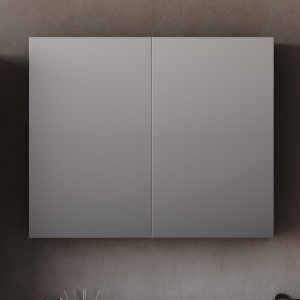 · Καθρέπτης κρεμαστός. Διαθέτει πρόσοψη καθρέφτη με πλαίσιο σε ματ λάκα με δύο πόρτες. Διαθέτει εσωτερικό ράφι για να οργανώνεται καλύτερα η αποθήκευση χρηστικών αντικειμένων. Ο χρωματισμός ταιριάζει απόλυτα σε όλους τους τύπους των μπάνιων, διαστάσεις 75x14x68 cm
