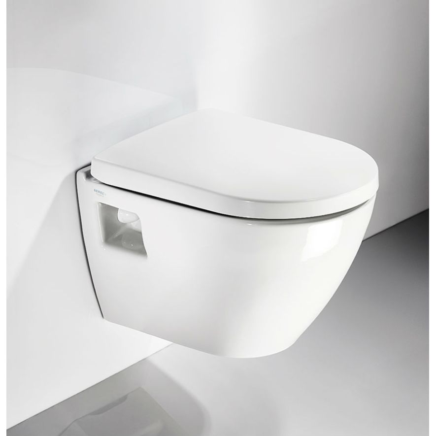 Λεκάνη WC κρεμαστή πορσελάνης υψηλής ποιότητας με σύστημα μπιντέ, SEREL σειρά SMART SM12B00 Λευκό προβολή 48,5 x 35,5 cm, με κάλυμμα βακελίτη 6001 Λευκό αποσπώμενο. Διατίθεται επίσης με κάλυμμα βακελίτη soft close 6001C αποσπώμενο. Άριστη ποιότητα που εξασφαλίζει την απαιτούμενη αντοχή και διαχρονικότητα.