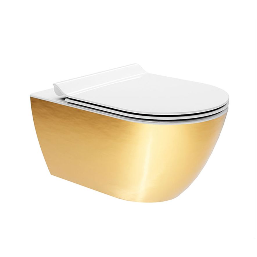 Λεκάνη WC κρεμαστή πορσελάνης υψηλής ποιότητας, GSIσειρά PURA Swirl®Gold 55x36 cm, με κάλυμμα βακελίτη SLIM soft close αποσπώμενο, λευκό με χρυσούς μεντεσέδες. Άριστη ποιότητα που εξασφαλίζει την απαιτούμενη αντοχή και διαχρονικότητα.