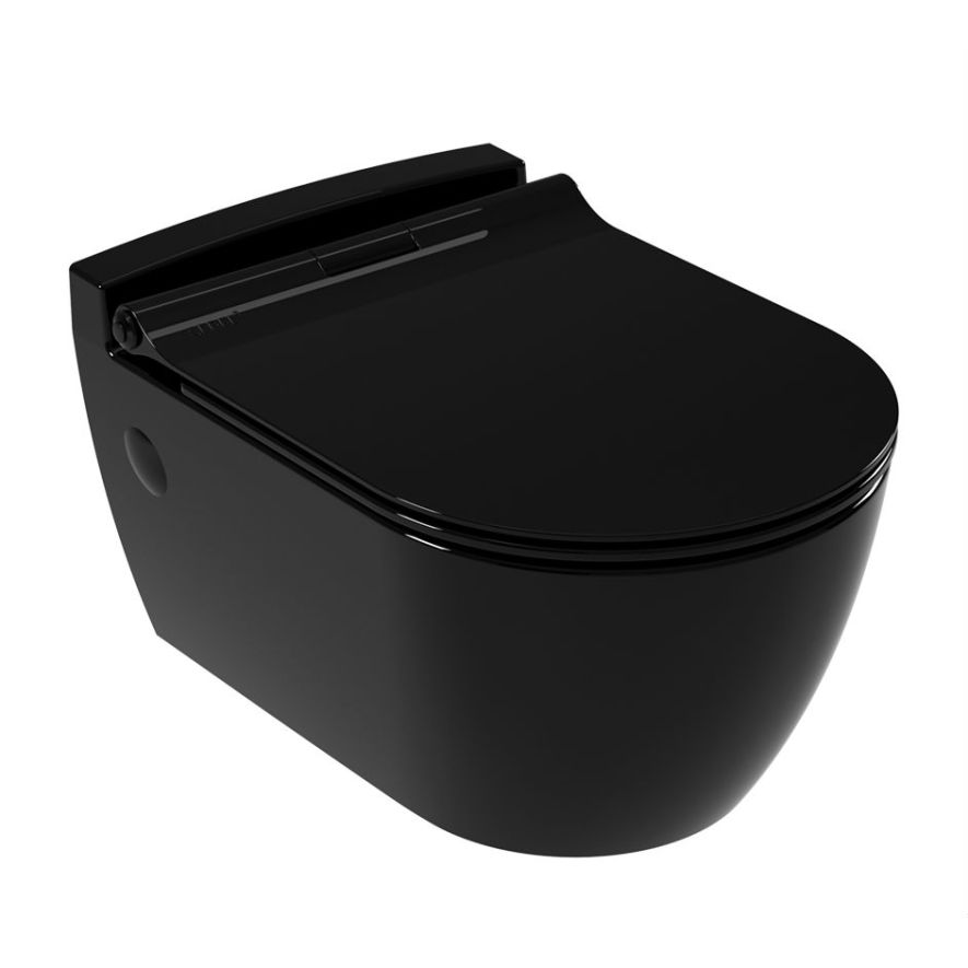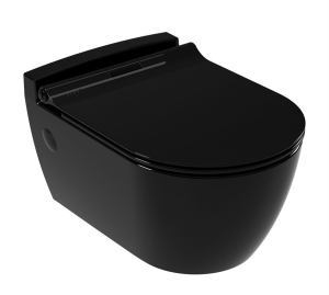 Λεκάνη WC κρεμαστή πορσελάνης υψηλής ποιότητας, SEREL σειρά SAPPHIRE Color SP1000-400 Μαύρο γυαλιστερό προβολή 52 cm, με κάλυμμα βακελίτη 6001-400 Μαύρο αποσπώμενο. Διατίθεται επίσης με κάλυμμα βακελίτη SLIM soft close 6001SC-400 αποσπώμενο και με κάλυμμα βακελίτη soft close 6001C-400. Άριστη ποιότητα που εξασφαλίζει την απαιτούμενη αντοχή και διαχρονικότητα.