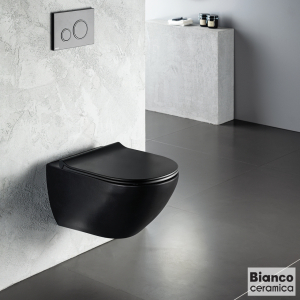 Λεκάνη WC "Rimless" κρεμαστή πορσελάνης υψηλής ποιότητας, BIANCO Ceramica σειρά REMO Rimless RM11500SC Black Matt