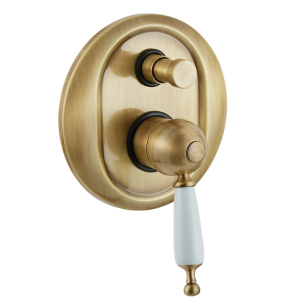 Μείκτης εντοιχισμού δύο εξόδων με εκτροπέα φινίρισμα Bronze / λευκό ή Bronze / ξύλο της Bugnatese σειρά OXFORD μοντέλο 6372. Όλες οι σειρές των μπαταριών Bugnatese έχουν σχεδιαστεί με βάση την προσοχή στη λεπτομέρεια και την καινοτομία. Όλα τα προϊόντα έχουν ιδανική σχέση ποιότητας – τιμής.