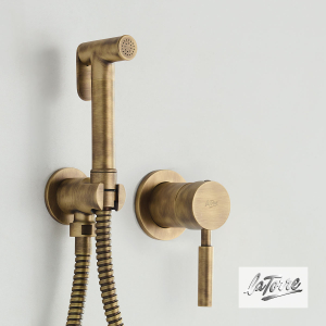 Μίκτης δύο οπών με ντουζάκι shut-off, για πλύση ατομικής υγιεινής ή πλύση λεκάνης wc, φινίρισμα Bronze Brushed, της La Torre σειράς New Tech Flush Mix μοντέλο 12211-221