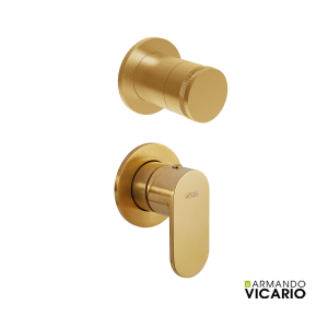 Μίκτης εντοιχισμού με εκτροπέα περιστροφικό δύο εξόδων, φινίρισμα Gold Brushed, της Armando Vicario σειρά SLIM μοντέλο 500050-201 + 34374-201. Όλες οι σειρές των μπαταριών Armando Vicario έχουν σχεδιαστεί για να σέβονται την αισθητική, το χρόνο και το περιβάλλον. Όλα τα προϊόντα έχουν ιδανική σχέση ποιότητας – τιμής.