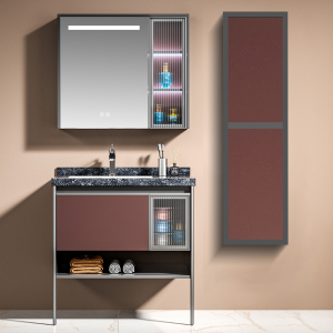 Μοντέρνο επδαπεδιο έπιπλο μπάνιου από κόντρα πλακέ θαλάσσης σετ της MARTIN σειρά PLYWOOD μοντέλο ERIETE χρώμα Μπορντό / Ανθρακί 80 cm. Επιδαπέδια βάση επίπλου, με ενιαίο αποθηκευτικό χώρο, ανοιχτό ράφι, ντουλάπι δεξιά νιπτήρας πορσελάνης, καθρέπτης ντουλάπι κρεμαστός με Led φωτισμό. Η σύνθεση εκφράζει την τέλεια αντίθεση πολυτελούς και απλού. Η σειρά ακολουθεί τη σύγχρονη λογική των επίπλων προσφέροντας έναν κόσμο εργονομίας και δημιουργικών λύσεων. H στήλη, τα αξεσουάρ, και η μπαταρία δεν συμπεριλαμβάνεται στην τιμή.