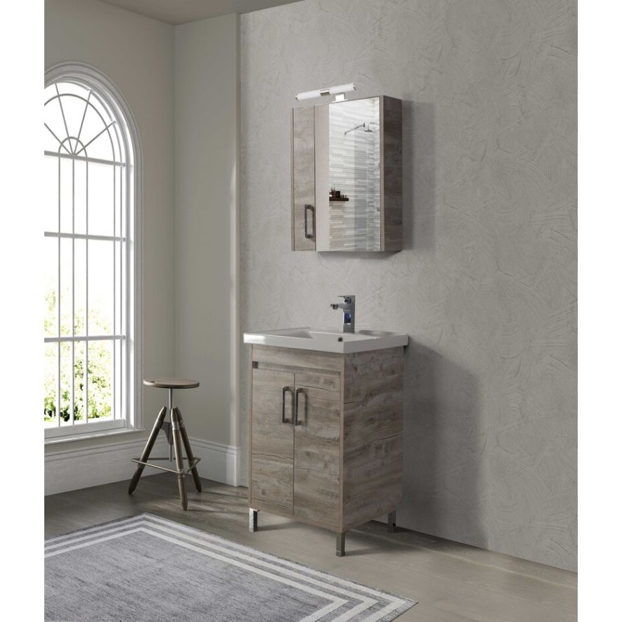Μοντέρνο έπιπλο μπάνιου σετ της MARTIN σειρά SAVINA μοντέλο CEMENT 55. Επιδαπέδια ή κρεμαστή βάση επίπλου, με αποθηκευτικούς χώρους, νιπτήρας πορσελάνης, καθρέπτης κρεμαστός και φωτιστικό. Η σύνθεση SAVINA εκφράζει την τέλεια αντίθεση πολυτελούς και απλού. Η σειρά SAVINA ακολουθεί τη σύγχρονη λογική των επίπλων προσφέροντας έναν κόσμο εργονομίας και δημιουργικών λύσεων. H κρεμαστή στήλη, το φωτιστικό και η μπαταρία δεν συμπεριλαμβάνεται στην τιμή.