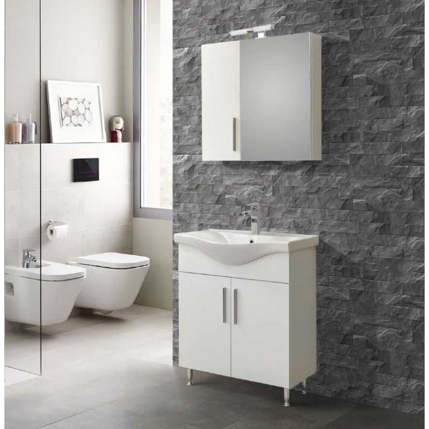 Μοντέρνο έπιπλο μπάνιου σετ της MARTIN σειρά SIENA μοντέλο WHITE 75. Επιδαπέδια βάση επίπλου, με ενιαίους αποθηκευτικούς χώρους, νιπτήρας πορσελάνης, καθρέπτης κρεμαστός και φωτιστικό. Η σύνθεση SIENA εκφράζει την τέλεια αντίθεση πολυτελούς και απλού. Η σειρά SIENA ακολουθεί τη σύγχρονη λογική των επίπλων προσφέροντας έναν κόσμο εργονομίας και δημιουργικών λύσεων. H κρεμαστή στήλη, το φωτιστικό και η μπαταρία δεν συμπεριλαμβάνεται στην τιμή.