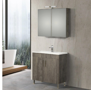 Μοντέρνο έπιπλο μπάνιου σετ της MARTIN σειρά SKOPELOS μοντέλο BERLIN 80. Επιδαπέδια βάση επίπλου, με ενιαίους αποθηκευτικούς χώρους, νιπτήρας πορσελάνης, καθρέπτης κρεμαστός και φωτιστικό. Η σύνθεση SKOPELOS εκφράζει την τέλεια αντίθεση πολυτελούς και απλού. Η σειρά SKOPELOS ακολουθεί τη σύγχρονη λογική των επίπλων προσφέροντας έναν κόσμο εργονομίας και δημιουργικών λύσεων. H στήλη, το φωτιστικό και η μπαταρία δεν συμπεριλαμβάνεται στην τιμή.