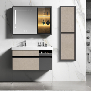 Μοντέρνο επιδαπέδιο έπιπλο μπάνιου από κόντρα πλακέ θαλάσσης σετ της MARTIN σειρά PLYWOOD μοντέλο ELITE χρώμα Γκρι / Μπεζ 80 cm