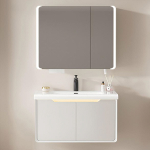 · Καθρέφτης κρεμαστος εξωτερικά Led με αντιθαμβωτική λειτουργεία εσωτερικά ενιαίος χώρος με ένα ράφι και υποδοχές στη πόρτα για αποθήκευση καλλυντικών και ειδών προσωπικής υγιεινής, διαστάσεις 80x50 cm