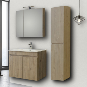 Μοντέρνο έπιπλο μπάνιου σετ της MARTIN σειρά OMEGA μοντέλο BEIGE OAK 75. Κρεμαστή βάση επίπλου, με ενιαίους αποθηκευτικούς χώρους, νιπτήρας πορσελάνης, καθρέπτης κρεμαστός και φωτιστικό. Η σύνθεση Omega εκφράζει την τέλεια αντίθεση πολυτελούς και απλού. Η σειρά Omega ακολουθεί τη σύγχρονη λογική των επίπλων χωρίς πόμολα προσφέροντας έναν κόσμο εργονομίας και δημιουργικών λύσεων. H κρεμαστή στήλη και η μπαταρία δεν συμπεριλαμβάνεται στην τιμή.